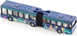 Ontdek een robuust metalen model van een gelede bus met realistische uitstraling, transparante ramen en een flexibel scharnier voor soepel bochtenwerk. Het autootje is ideaal voor peuters en jongere schoolkinderen – ligt goed in kleine handen en dankzij de hoogwaardige afwerking gaat het uren speelplezier mee.