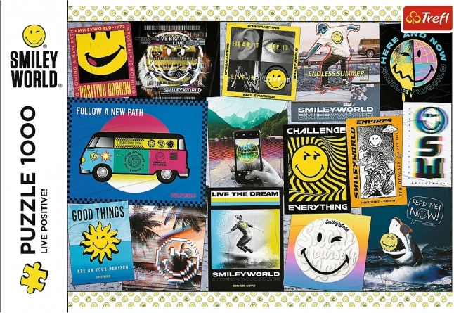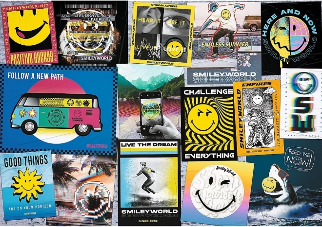 Geniet van plezier en een goed humeur met een puzzel van 1000 stukjes uit de SMILEY-collectie. De kleurrijke collage van de iconische smile op foto’s en posters brengt positieve energie en geweldige ontspanning voor je vrije tijd.