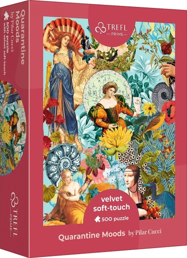Dompel je onder in een creatieve wereld met TREFL Velvet Soft Touch: Stemningen in quarantaine (500 stukjes). Dankzij het fluwelen oppervlak voelt elke aanraking prettig aan, lijken de kleuren dieper en leg je comfortabeler, ook tijdens langere speelsessies. Met de UFT – Unlimited Fit Technology kun je puzzels van hetzelfde type en aantal stukjes vrij met elkaar verbinden en zo grootformaat collages maken die precies bij je fantasie passen.