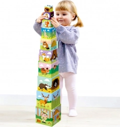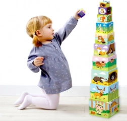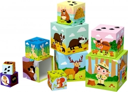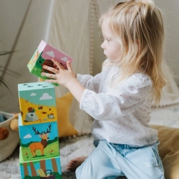 Educatieve stapelkubussen met bosdierenmotieven maken elke kleine bouwer blij. Kinderen kunnen de kubussen stapelen tot een hoge toren, hekjes of bruggen bouwen, of ze in elkaar schuiven en zo het ruimtelijk inzicht oefenen. De illustraties met diertjes nodigen uit tot verhalen vertellen en ondersteunen daarmee de woordenschat, concentratie en het geheugen.