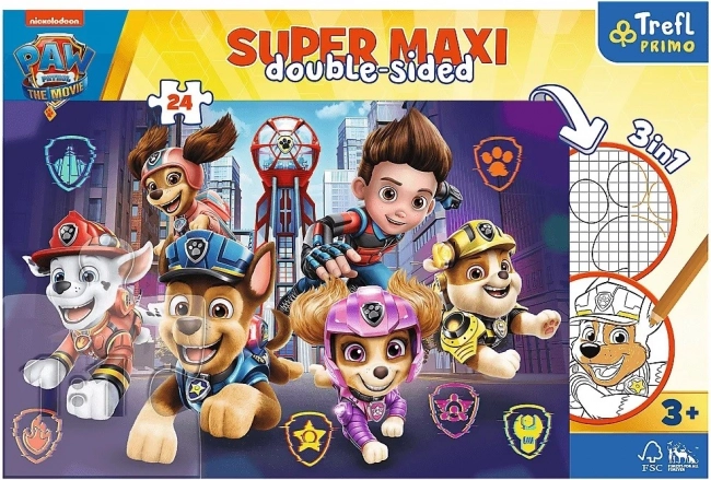 Grote dubbelzijdige puzzel met het motief van PAW PATROL: THE MOVIE biedt 3 keer plezier in één: het leggen van 24 grote stukjes, een kleurplaat en een speelse tekenactiviteit op de achterkant. Ideaal voor kinderen vanaf 3 jaar – bevordert fijne motoriek, logisch denken en creativiteit.