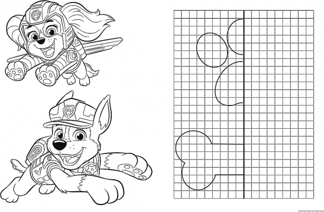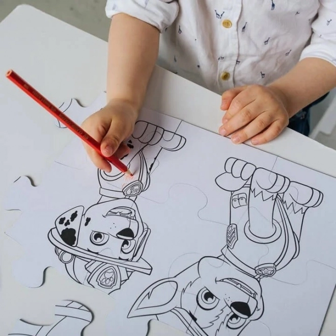 Leg de kleurrijke PAW PATROL-afbeelding en draai de puzzel om – op de achterkant wachten een kleurplaat en een slimme tekenactiviteit voor nog uren creatief vermaak.