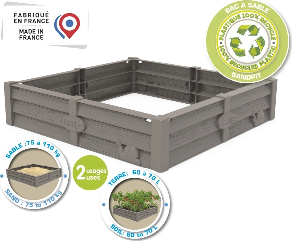 De zandbak biedt plaats aan 100 kg zand of 70 kg aarde voor teelt.