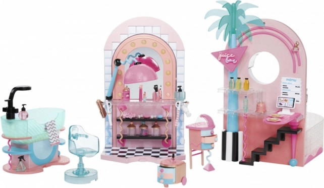L.O.L. Surprise Salon en Spa is de perfecte speelset voor liefhebbers van modepoppen en verzamelseries. Het biedt een breed scala aan functies, waaronder een waterval, stations voor haar- en nagelverzorging en zelfs een bar met verse sappen!