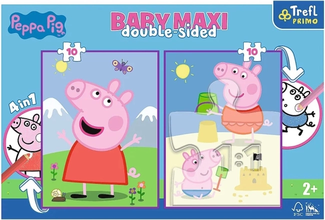 Puzzel Vrolijke dag van Peppa uit de Terfl Primo reeks biedt maar liefst 4 activiteiten in één set! Het bevat twee grote puzzels met 10 grote stukken, ideaal voor de allerkleinsten vanaf 2 jaar. Op de achterkant van de puzzels zijn grote kleurplaten met geliefde personages uit kinderanimaties te vinden.