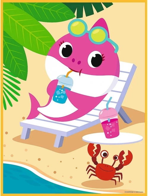 De puzzel biedt twee verschillende scènes vol kleurige wereld van haaien op het strand en onder water.