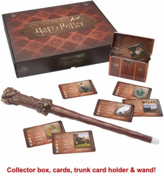 Pictionary Air Harry Potter tilt de klassieke partygame naar een nieuw niveau. Met een speciale toverstok in de stijl van die van Harry teken je in de lucht, terwijl je teamgenoten jouw creaties op het scherm van een smart device volgen. Dankzij de gratis Pictionary Air-app is het spelen intuïtief en vlot – ideaal voor familiebijeenkomsten en avonden met vrienden.