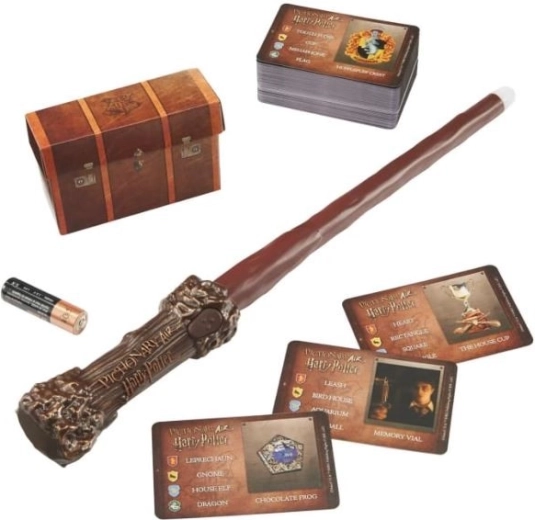 Ontdek de magische versie van Pictionary uit de wereld van HARRY POTTER. Met de interactieve toverstok teken je in de lucht en verschijnen je tekeningen op het scherm van je telefoon of tablet. Kies je afdeling Gryffindor, Hufflepuff, Slytherin of Ravenclaw en strijd in het raden van begrippen. De set bevat 112 dubbelzijdige kaarten, Nederlandse lokalisatie en eenvoudige verbinding met de tv voor nog meer plezier.