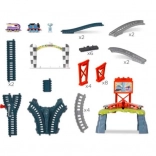 Met deze trein- en railsset met een duwtrein van Fisher-Price kunnen kinderen de spectaculaire race om de Sodor Cup uit de serie Thomas en Vrienden naspelen! Kinderen kunnen de gegoten locomotieven Thomas en Kana bij de startpoort zetten en aan de hendel trekken, zodat beide vrienden door de haarspeldbocht naar de finishlijn schieten. Deze railset zit vol spannende bochten, waardoor deze vriendschappelijke competitie nog leuker wordt. Wie komt als eerste over de finish en neemt de trofee mee naar huis?