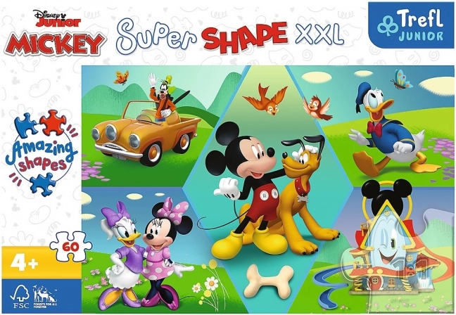 Grootformaat Super Shape-puzzel met het thema MICKEY MOUSE met 60 XXL-stukjes, waaronder ook stukjes met ongewone vormen. Dankzij de grotere stukjes leg je het eenvoudig, bevordert het de fijne motoriek en biedt het veel plezier voor kinderen.