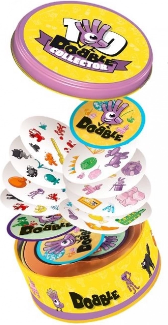 Herbeleef de 10e verjaardag van het populairste familiespel met een speciale editie vol verrassingen! Dobble Collector bevat maar liefst 2 nieuwe decks met vergrote kaarten: één in feestelijke verjaardagsstijl met vergulde kaarten en een tweede, griezelige set die in het donker oplicht! Alles zit in een passend vergrote metalen blik, dat de inhoud effectief beschermt.