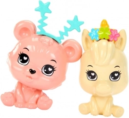 Twee dierenfiguurtjes – een roze beer en een beige paard – maken de verjaardagssfeer compleet.