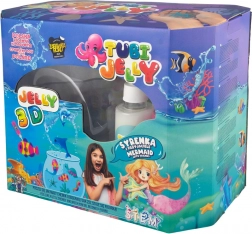 Ontdek Tubi Jelly – een creatieve set voor het maken van 3D gelfiguurtjes met 8 kleuren en een groot aquarium met zeemeerminmotief. Dankzij de eenvoudige werkwijze en de veilige activator maak je je eigen kleurrijke figuurtjes die je kunt laten drijven of uitstallen in het aquarium. De grote gelverpakkingen van 150 ml zorgen voor uren speelplezier.