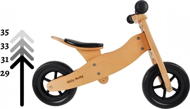 De Look Natural loopfiets van Milly Mally is ontworpen om kinderen te helpen hun balans en coördinatie te ontwikkelen tijdens het buitenspelen. Het houten frame garandeert een lange levensduur en een natuurlijke uitstraling, wat zowel ouders als kinderen aanspreekt. Dankzij de verstelbare zithoogte van 29 tot 35 cm groeit de fiets mee met het kind en past hij zich aan zijn behoeften aan.
