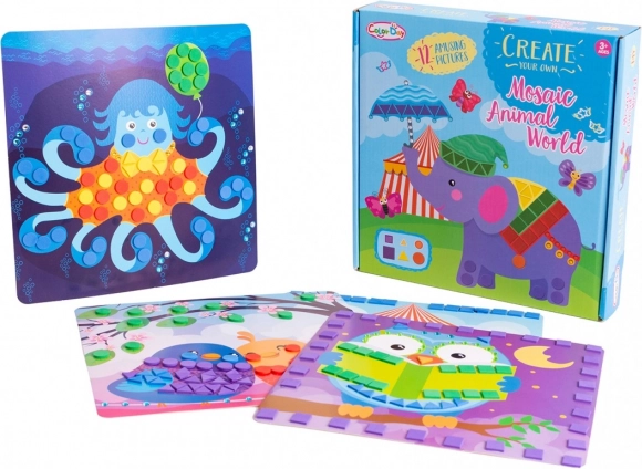 De set bevat prachtige illustraties om schitterende mozaïekafbeeldingen te maken met verschillende dieren.