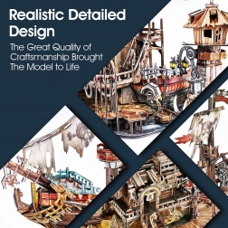 Ga op weg naar het legendarische Tortuga en bouw je eigen piratenhaven. Dit gedetailleerde 3D-model met 218 stukjes biedt een leuke familieactiviteit zonder lijm of schaar. Onderdelen van stevig 3 mm schuim met gelamineerde bedrukking zorgen voor stabiliteit en een prachtige uitstraling. Met een moeilijkheidsgraad van 5/7 en een bouwtijd van 180–220 minuten is het een ideale uitdaging voor kleine en grote bouwers.