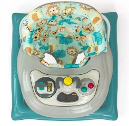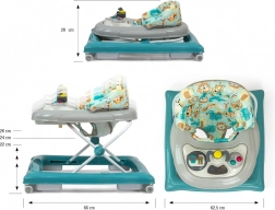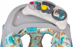 Het product heeft een educatief paneel met allerlei verrassingen voor kleine ontdekkers: lichtjes, piepjes, melodieën, rammelaars, knopjes en andere bewegende elementen. Na het uitnemen van het paneel uit de schaal van de loopstoel kan het dienen als een losstaand speeltje, bijvoorbeeld als fijne reisgenoot, en het bovendeel is handig als speeltafeltje.