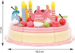 Deze taart is gemaakt van hoogwaardig hout dat veilig is voor kinderen en biedt tijdloze schoonheid en duurzaamheid. De taartstukken zijn verbonden door magneten, zodat kinderen de taart "kunnen snijden" en serveren op de bijgevoegde bordjes met hulp van het bestek.