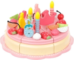Houten verjaardagstaart met 48 delen is ideaal speelgoed voor kinderen die graag culinaire avonturen beleven. Kinderen kunnen de taart versieren met de bijgevoegde decoratieve elementen zoals fruit, suikerstukjes en kaarsjes, wat hun creativiteit en motorische vaardigheden bevordert.