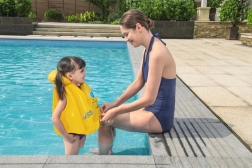 Het Bestway kinderzwemvest is ontworpen om maximale veiligheid te bieden dankzij zijn drie onafhankelijke luchtkamers. Een ademkraag zorgt ervoor dat het hoofd boven het wateroppervlak blijft. Dankzij de regelbare gespen is hij makkelijk aan te trekken en sluit hij goed aan op het lichaam van het kind. Het vest is versierd met een vrolijke blauwe octopus die de aandacht trekt en kinderen motiveert om te zwemmen.