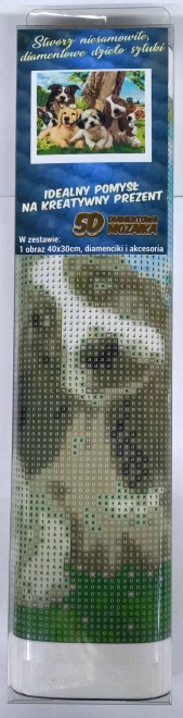 Ontdek de ontspannende wereld van diamond painting met het motief van een vrolijke hondenbende in het formaat 30 × 40 cm. De set bevat alles wat je nodig hebt om meteen te beginnen en je eigen sprankelend kunstwerk te maken. Ideaal om samen creatief te zijn met kinderen en volwassenen, een geweldig cadeau voor elke gelegenheid. Complete set, eenvoudige toepassing, ontspannende creativiteit en een stralend resultaat voor in huis.