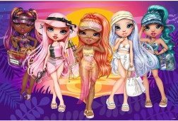 De glitterpuzzel met de geliefde RAINBOW HIGH-poppen biedt kinderen creatief plezier en een aantrekkelijke look dankzij de fijne gouden brokaat. Alles is opgeborgen in een stevig koffertje met handvat, zodat je de puzzel gemakkelijk meeneemt op reis of naar opa en oma.