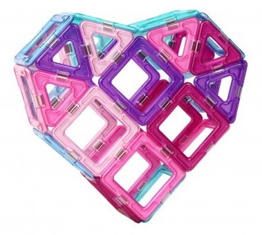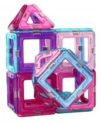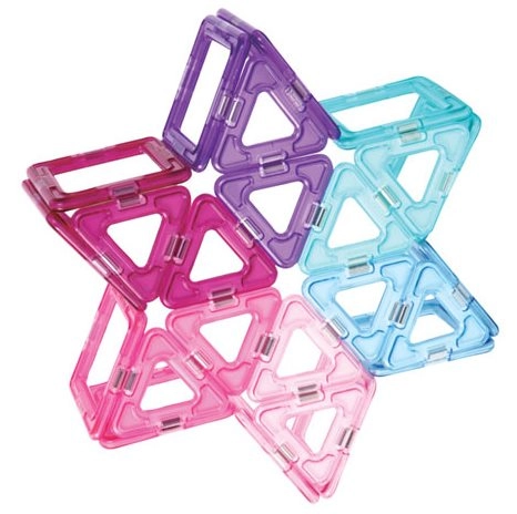 De pastel-editie van de populaire bouwset bevat 18 vierkanten en 12 driehoeken in halftransparante kleuren (roze, paars, turquoise, blauw). De onderdelen verbinden via betrouwbare magneten langs de randen, zodat kinderen eenvoudig sterren, huisjes, harten en torentjes maken. Ideaal voor de eerste constructieproberen en de ontwikkeling van ruimtelijk inzicht.
