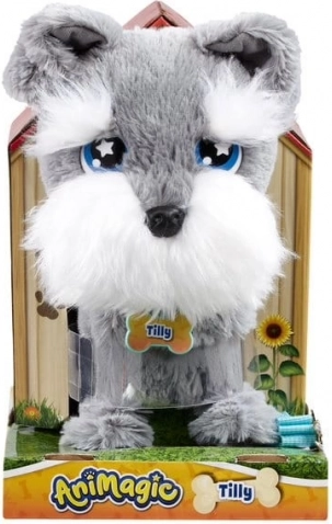 De schattige terriër Tilly van ANI MAGIC is een interactieve pluchen hond die kinderen verrast met realistische reacties. Ze kan lopen, met haar staart kwispelen en blaffen, houdt van aaien over haar hoofd en dankzij de zachte pluche is ze ideaal om mee te knuffelen. Het compacte formaat van ca. 23 cm ligt perfect in kleine kinderhandjes.