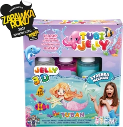 Ontdek de magie van experimenteren en creëren met Tubi Jelly. Meng gewoon de activator met water, kleur de sjabloon in met gelkleuren en dompel onder – binnen een oogwenk krijg je elastische 3D-figuurtjes die op het water drijven. Geweldig voor de ontwikkeling van creativiteit, geduld en fijne motoriek.