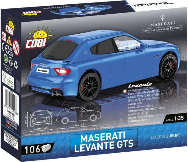 De luxueuze SUV MASERATI Levante GTS staat bekend om zijn dynamische uitstraling en de prestaties van de V8-motor. Het COBI-bouwstenenmodel vangt de vormen nauwkeurig en is ideaal om zowel in een collectie tentoon te stellen als voor dagelijks speelplezier. Dankzij de robuuste constructie en hoogwaardige prints geniet je van langdurig plezier zonder kleurvervaging.