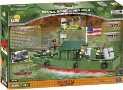 De PBR-patrouilleboot is een icoon van de Vietnamoorlog — licht, snel en met een geringe diepgang dankzij de glasvezelromp en waterjet-aandrijving. De replica in deze bouwset vangt trouw de vormen, uitrusting en rijke details, inclusief de dubbele M2HB 12,7 mm affuit op de boeg, achterste bewapening en bemanningsaccessoires. Alles wordt aangevuld met een textielen zeil dat het model een authentieke uitstraling geeft.