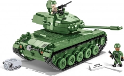 Bouw de iconische lichte Amerikaanse tank M41A3 Walker Bulldog uit meer dan 625 stenen van COBI. Het model biedt realistische details, een draaibare toren, werkende rupsbanden, openende luiken en een toegankelijke blokmotor. Inclusief 2 soldatenminifiguren met accessoires en een verzamelplaatje met de naam van het voertuig. Perfect voor fans van militaria, de Vietnamoorlog en als duurzame, compatibele bouwset voor kinderen.