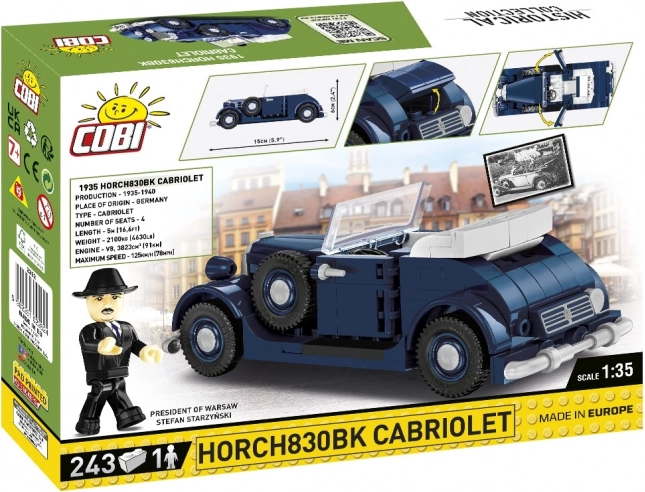 Bouwset van de HORCH 830BK cabriolet op schaal 1:35. 243 onderdelen, duurzame bedrukkingen, compatibel met andere merken, gemaakt in de EU, figuur Starzyński.