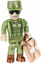De set bevat een DAK-soldaat met uitrusting en praktische accessoires zoals een kist, houweel en koevoet voor een overtuigende veldinzet-setting.
