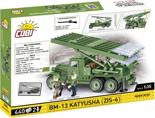 Het model op schaal 1:35 bestaat uit 440 hoogwaardige onderdelen en vangt dankzij moderne COBI-elementen de karakteristieke vormen van het origineel getrouw. Met draaibare wielen met banden, verstelbare lanceerhoek, te openen cabine en afneembare raketten. Alle graphics zijn geprint, zonder stickers, en de twee figuurtjes van de Sovjet-bemanning hebben gedetailleerde prints, inclusief op de rug.