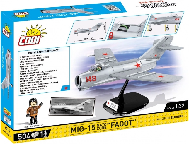 Bouw de legendarische Sovjet straaljager MiG-15 FAGOT op schaal 1:32 uit 504 onderdelen. Het model heeft een openende cockpit, draaibare wielen, gedetailleerde prints zonder stickers en een presentatiestandaard met naambordje. Perfect voor fans van luchtvaart, militaria en de geschiedenis van de Koreaanse Oorlog.
