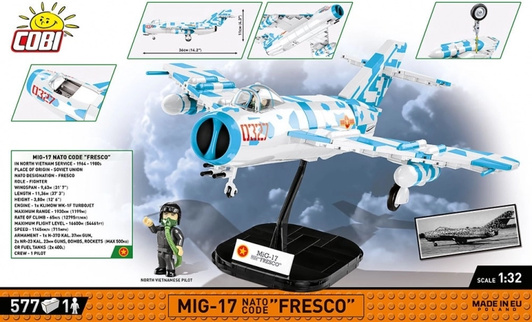 - Schaal 1:32 en 577 onderdelen voor het gedetailleerde silhouet van de MIG‑17