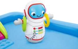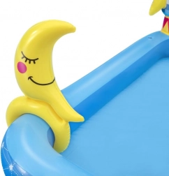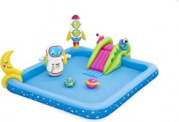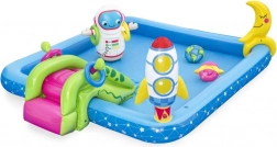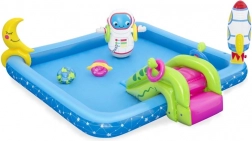 Opblaasbaar Waterpark Galaxie BESTWAY biedt eindeloze uren plezier voor kinderen. Deze kleurrijke zwembadset met kosmisch thema omvat leuke elementen zoals een glijbaan, sproeier en een ringwerpenspel, gemaakt van hoogwaardig PVC-materiaal.