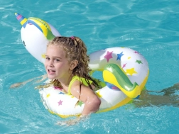 De schattige opblaasbare BESTWAY zwemring in de vorm van een eenhoorn maakt alle kleine zwemmers van 3 tot 6 jaar blij. Dankzij duurzaam PVC-materiaal, een veiligheidsventiel en compacte afmetingen is hij ideaal voor zwembad, strand en meer. Hij is gemakkelijk op te blazen, leeg te laten lopen en neemt minimale ruimte in in de tas.