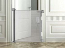 Dit uitschuifbare hek/rolgordijn is een ideale oplossing voor het beveiligen van doorgangen, trappen en andere risicoplekken in huis. In opgerolde toestand neemt het minimaal ruimte in en dankzij het strakke, moderne design past het perfect in elk interieur.
