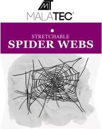 Het kunstmatige spinnenweb van MALATEC is een onmisbare decoratie voor Halloween. Het elastische materiaal is gemakkelijk uit te rekken, te scheuren en te vormen, zodat u in een mum van tijd een authentiek ogend spinnenweb maakt op meubels, balustrades, deuren of in een etalage. De vezels zijn dicht en hechtend, waardoor ze na het uitrekken zorgen voor een grote dekking tot 2,5 m² en een perfect griezelige look.