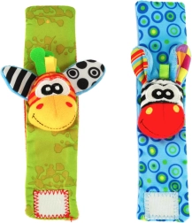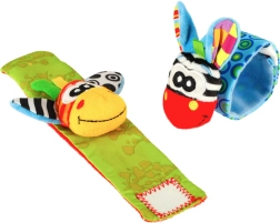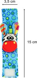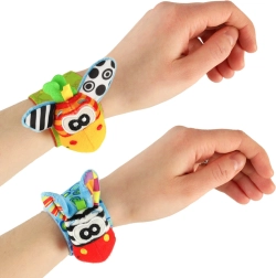 De schattige bandjes met diertjes trekken de aandacht van je baby met contrasterende kleuren en patronen, zachte stof en verschillende tasttexturen. Elke beweging van het handje wordt beloond met een zacht rammelend geluid, en in de oortjes zit bovendien knisperfolie voor extra zintuiglijke prikkels.