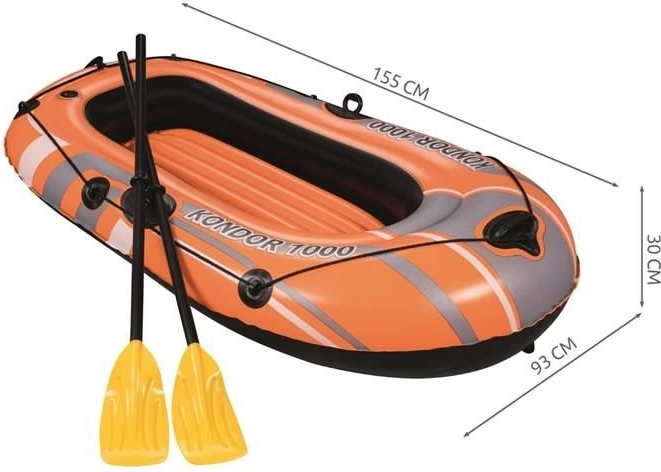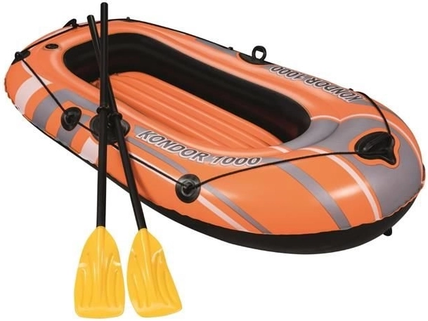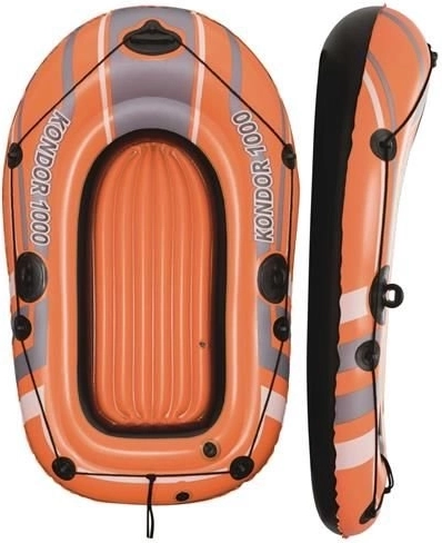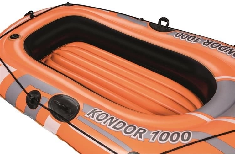 De opblaasbare boot Kondor 1000 is bedoeld voor recreatieve wateractiviteiten. Hij is uitgerust met drie gescheiden luchtkamers, wat stabiliteit en veiligheid op het water garandeert. Daarnaast is de boot rondom voorzien van een grijptouw met geïntegreerde handgrepen voor gemakkelijke toegang tot het water. De opblaasbare vloer biedt extra comfort tijdens uw vaart.