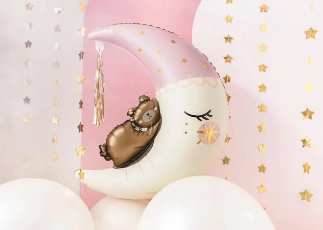 Op zoek naar een charmante decoratie voor een kinderfeestje, babyshower of verjaardag? Deze folieballon met beertje op de maan is de ideale keuze. Dankzij de mogelijkheid om met helium op te blazen creëert hij een mooi zweefeffect, terwijl hij bij het opblazen met lucht perfect past als onderdeel van de decoratie of fotowand.