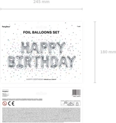 Decoratieve folieballonnen met de tekst HAPPY BIRTHDAY creëren direct een feestelijke sfeer. Het glanzende zilveren oppervlak weerkaatst prachtig het licht en past bij de meeste kleurcombinaties en thema’s voor verjaardagsdecoratie.