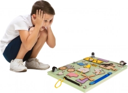 Dankzij verschillende beweegbare onderdelen en oppervlakken stimuleert dit bord de fijne motoriek en biedt het zintuiglijke prikkels voor ontwikkeling.