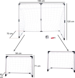 Het voetbaldoel voor kinderen 2-in-1 is een geweldige manier om uw kinderen te betrekken bij sportactiviteiten direct in uw tuin. Het doel kan eenvoudig worden samengesteld tot twee kleinere of één grotere, waardoor het zich aanpast aan elke ruimte. In de verpakking vindt u ook een bal en pomp, zodat u direct kunt gaan spelen.