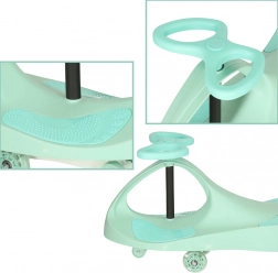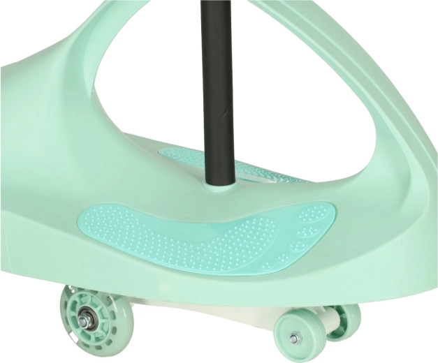 Het ergonomisch gevormde zadel, antislip voetsteunen en breed uit elkaar staande achterwielen zorgen voor stabiliteit en comfort. De LED-wielen vallen direct op en het rubberen loopvlak is vriendelijk voor vloeren.