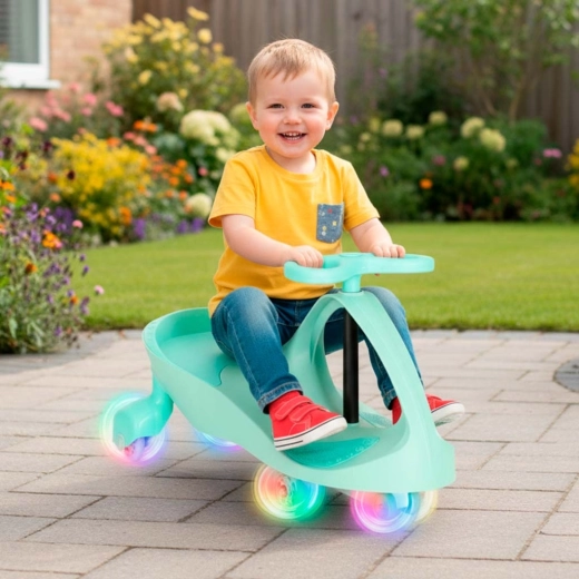 De stijlvolle gravitatie-loopfiets met LED-lichte wieltjes is een hit bij kinderen en ouders. Dankzij sturen met stuurbeweging rijdt hij weg zonder met de voeten af te zetten, heeft een ergonomisch zadel, breed uit elkaar staande achterwielen voor stabiliteit en stille rubberen wielen die de vloer niet krassen. De stevige constructie draagt tot 80 kg en is geschikt voor binnen en buiten.
