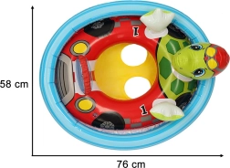 De zwemstoel met zitje in schildpad- en autootjesmotief ondersteunt de eerste kennismaking met water. De eenkamersconstructie zorgt voor snel opblazen en het veiligheidsventiel houdt de lucht betrouwbaar vast. De maximale draagkracht tot 23 kg is ideaal voor kleine ontdekkers van 3–4 jaar.
